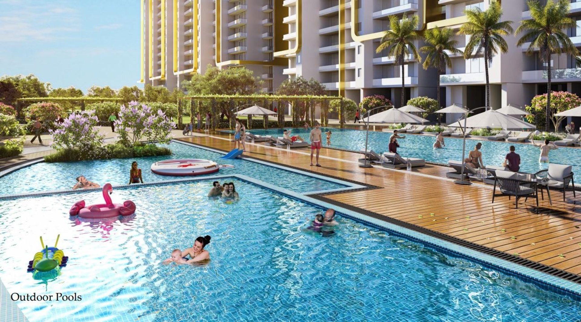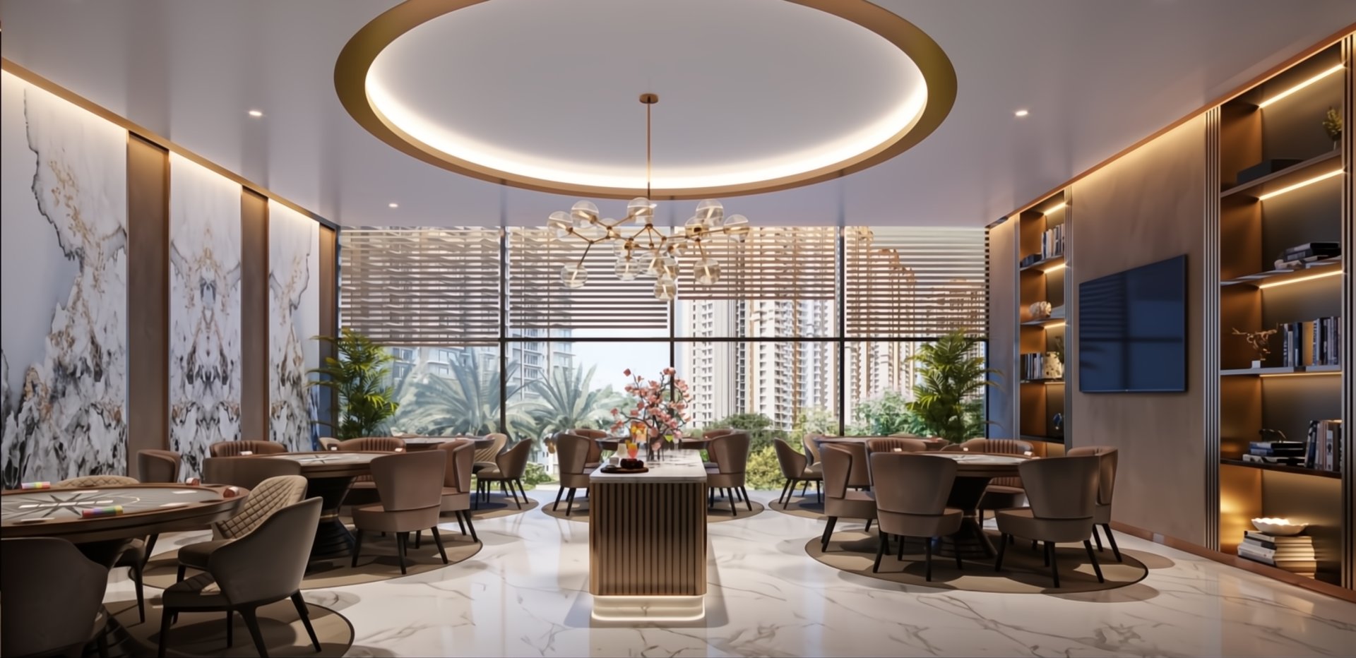 World-Class Amenities: Infinity-edge swimming pool, spa, wellness center, fitness club, private lounges, fine-dining areas, golf simulator, and dedicated kidsβ zones.